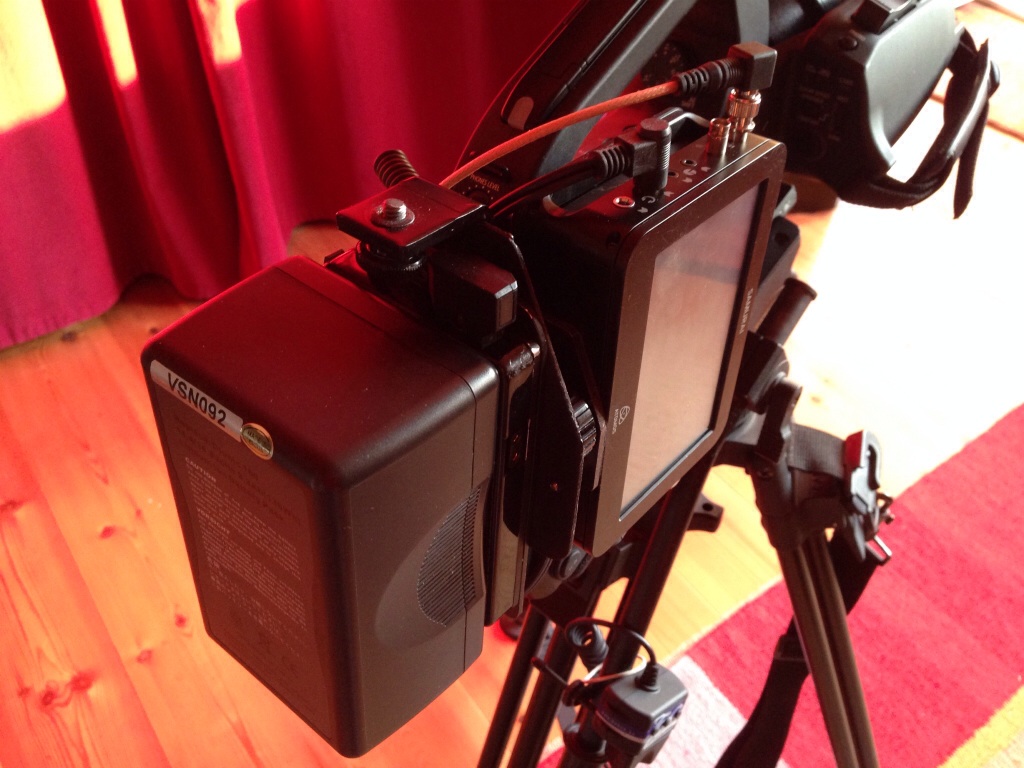 I record Audio direct to the file through the analog input. Had some trouble with that. You need to switch battery management in the Samurai to Anton Bauer adapter, to prevent clicking every second. I use a LANC cable, inserted tape and free running timecode to get record the Samurai with the record button of the camera. Locking the screen from the Samurai prevent unexpected recordings.