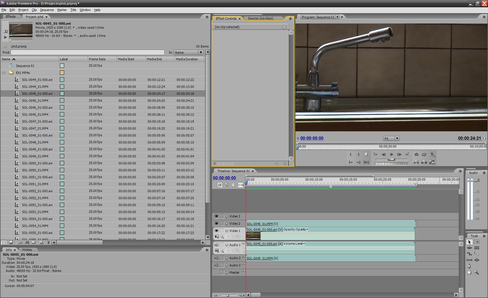Is this happening to anyone else? I've attached a screenshot from within CS3 to show the difference between each of the MP4s and their equivalent AVIs. In every case, the duration is less for the AVIs than for the MP4s. I am wondering: a) Why? b) How? As in, is it simply removing three frames from the beginning or end or are they missing from the middle somewhere or are some of them blended? I have also noticed that in the tab that lists all this information, the Media End and Media Duration figure should be identical, since all the timecodes start at 0:00:00, but they are also different from each other in every case, whether it's AVI or MP4. How can that be? |