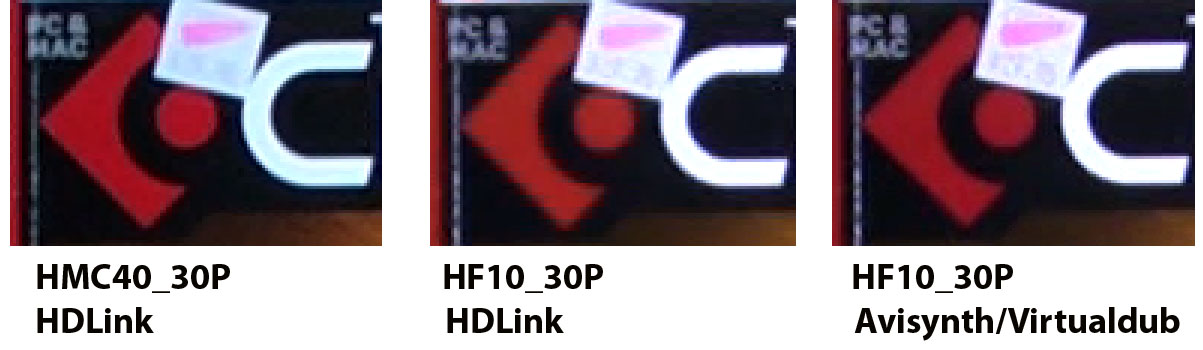 This week I bought a HMC40, and a poster on another forum asked if its 30P-in-60i had chroma artifacts. So I converted clips from both cameras using HDLink, grabbed frames from both avis, and on inspection concluded that the HF10 had the problem and the HMC40 did not. But then ... I got a response back arguing that the HF10 chroma interlace was simply a problem of incorrect H264 splitting/decoding and if it was done 'properly' (the poster recommended using avisynth and libavcodec) then the two cameras performed very similarly. Which indeed seems to be true (see the comparison below). The reason I am posting here is that the decoder itself did not seem to be the issue (I tried Mainconcept/Adobe2, ffdhow, and Microsoft's DTV-DVD decoder in Win7) ... what made the difference was whether I used HDLink or Avisynth. The suggestion was made that HDLink (and Premiere and AE also, apparently) incorrectly report the progressive/interlaced status of the Canon footage to the decoder, whereas they get it right for the Panasonic. Any thoughts/claifications on this would be appreciated! |