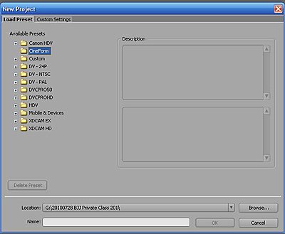 "The editing mode used by this project could not be loaded. The project will be opened in Desktop mode." If I try to create a new project, Premier Pro CS3 does not see ANY of the Cineform presets, even though they are in the presets folder (C:\Program Files\Adobe\Adobe Premiere Pro CS3\Settings\en_US\CineForm). They are all listed as Prospect presets. |