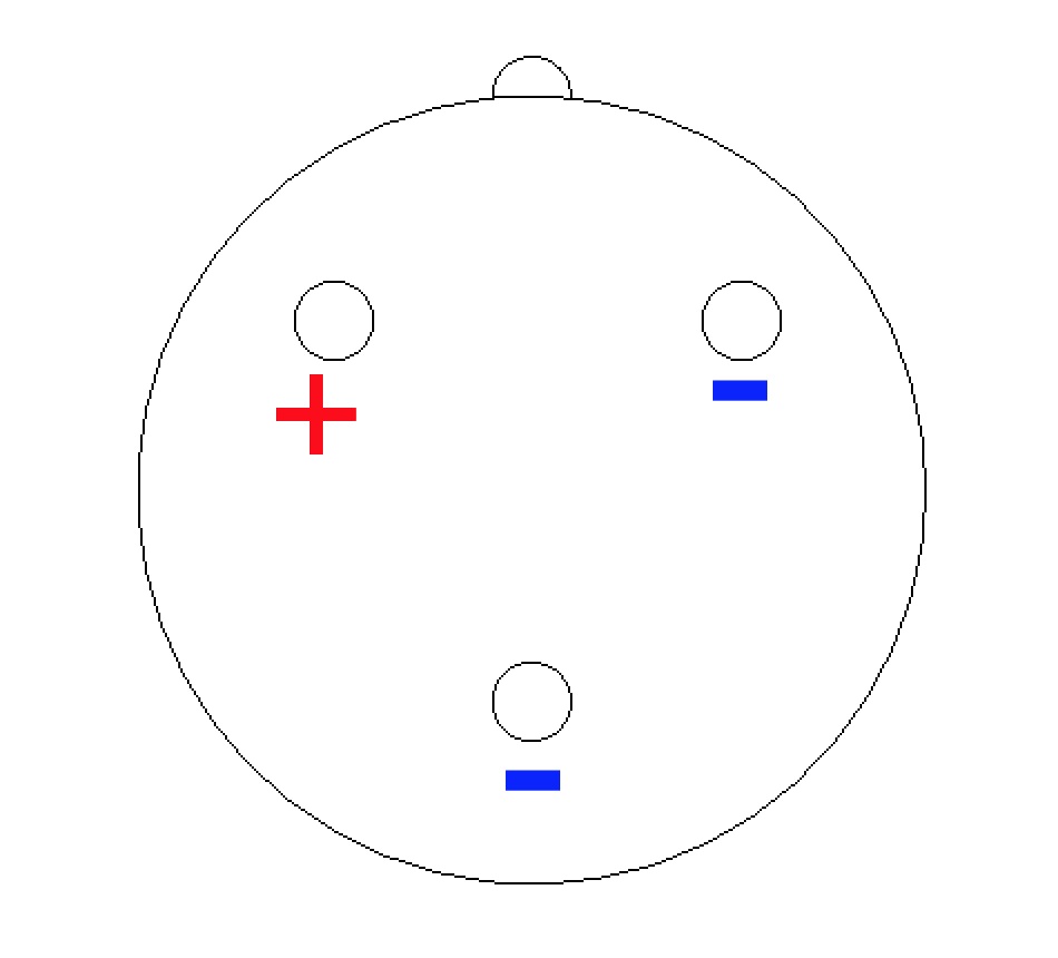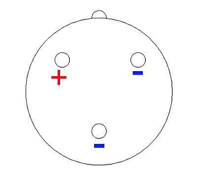 When looking at the 7Q power connector CABLE, pin 1 is on the bottom, pin 2 upper left and pin 3 is upper right. Which pin is hot (+) and which is ground (-)?? Thanks! Brian |