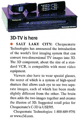 I just don't see 3D taking off in living rooms across the country anytime in the foreseeable future. Heck, HD is still struggling to take hold. There's just a whale of a lot of folks out there still watching SD material exclusively - even folks that own HDTVs. I live in rural Minnesota, and the cable-TV company out here still doesn't even offer any HD content whatsoever, nor do they even have any plans to do so (but they still charge an arm and a leg)!