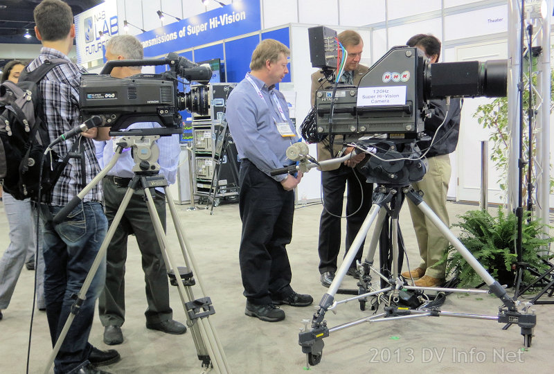 The exhibits which appealed to me most were the things I normally don't get to see from home on the intertubes, namely all of the 4K (and beyond) ultra-high definition content displayed on large, ample screens in the various theaters located throughout the show floor exhibits... such as Sony, RED, Canon, and several others. It was nice to see Japan's large NHK booth, tucked away in a back corner of North Hall, showing off their "Super Hi-Vision" prototype 8K broadcast systems. Their 8K theater display consisted of video shot at the London Olympics, the STS-135 space shuttle launch, and carnival celebrations in Brazil. Dazzling stuff, but the camera systems are quite large (see pic). Now that my feet are starting to feel better after a quiet weekend at home, I'll work on preparing a photo journal of what I saw at this year's show. Will advise when that's posted. |