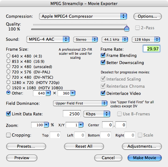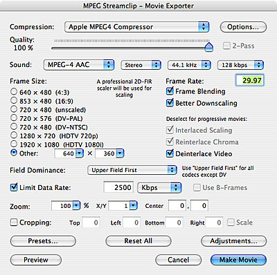 Remember to change your frame rate to match the source footage. I also always deinterlace for iPod. Also, go here and read the info and follow the link referencing the material.