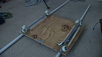(8) Skateboard wheels - $19 (2 decks from walmart) (1) 5ft pre-drilled V-Shaped Metal Rail (8) 1.5inch bolts (1) 5ft 2x4 (16) 1inch Washers (16) 1/2inch Washers (1) 4 x 4 plywood square (3) U-Bolts with wingnuts |