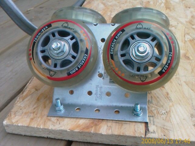 http://www.youtube.com/watch?v=5_NzTRPLKDA The thing did not cost that much, and i used 16 75mm rollerblades wheels with abec5 bearings. Used regular standard aluminium plates and bent them for the wheel mount. It rolls like a charm. There is even more pictures of my DIY projects here http://www.facebook.com/album.php?ai...5&id=510063049 Last edited by Vegard Paulsen; June 14th, 2008 at 04:05 AM. Reason: needed an url |