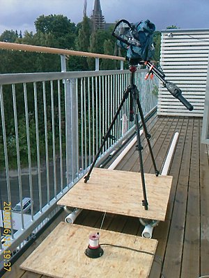 Great shots! Your solution seems to be working very well. I built a dolly very much like yours (http://www.dvinfo.net/conf/showthread.php?t=123388) and I also find that it moves very smooth and silent. I was thinking of building something small like this http://www.trevswork.com/mo/ for use with a photo camera for creating those long slow moving time lapse recordings. But your solution is pretty simple as it is, so I might try that first ;) Best regards, Andre. |