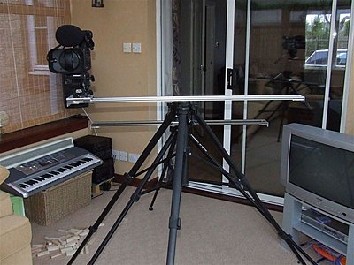 As such, I would always recommend you remove the camera from the tripod head when not in use. I use quick release mounts so it takes almost zero time. I'd do this as a matter of course even with a normal tripod. Hands up everybody thats had a drunk guest stumble into a tripod? So, by it's nature, you are holding it as you gluide, one hand on the carriage and the other on the end stop/foot. Anyway, here's a shot of one of the early prototypes on a tripod at full travel. Travel is 1m. Last edited by Alastair Brown; June 20th, 2008 at 03:24 AM. |