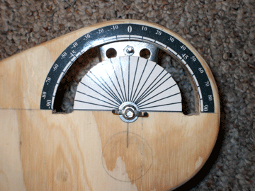 I liked this idea a lot (because I have to build stuff on the cheap) and decided to make one. I chose to go with my own design so I can use it with my tripod. I haven't drilled the slots for my tripods feet yet, but you can see the pencil marks (1 1/2 inch circles) where they will soon be. I need to get a flat tip drill bit first. I will drill the holes about 1/2 way through just so I can have something to hold my tripod in place. I made a slight modification by cutting some grooves in the plywood and adding another bolt on the castor to use as a scale indicator. I designed a scale in Photoshop, printed it out and laminated it using sticky back laminate. Then I stuck them on like decals and now I can set the desired angle I want. I realize it's not a precision scale but at least I can recreate my angles to some degree of accuracy. :) I have played around with it and it works beautifully! |