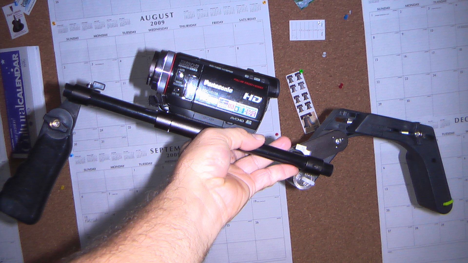 Bruce, I have five identical camera rigs. Each camera is a Panasonic HDC-HS100. For the shoulder support I used Cavision rs1580 from B&H