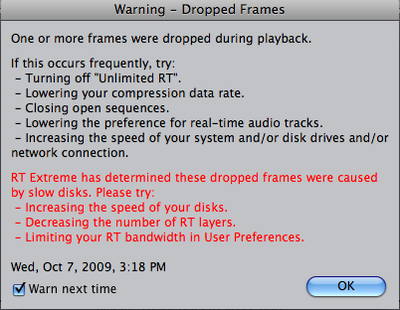 I'm playing a timeline that is ProRes, and some JPG images, and this error pops up maybe 75% through the timeline. Does anyone know how to fix this? I went to the little RT tab on the top left corner of the timeline and messed with the settings, but it still happens. Thanks! EDIT: Okay, I played with the settings for a new sequence, but the footage itself seems to run smoothly for now, but when I put in transitions afterwards, then the error starts popping up again. Is this a problem in regards to effects and transitions? Thanks!