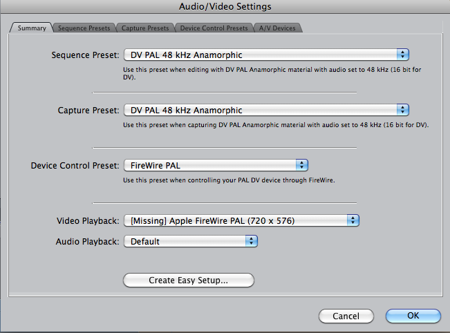I'm using the following settings and the footage stretches to fill the widescreen format which is one less question I need to ask, but the 1hr DV tapes are imported together as one clip.