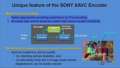 In Sony's case they specifically developed their XAVC format ecompassing H.264 like many other manufacturers but in Sony's case they are the only ones to date who in real time multi-pass and "Select appropriate encoding parameters by 'pre-encoding' for accurate rate control which enables them to achieve stable high picture quality constantly at much lower bit rates." as they put it. Why are Sony the only ones multi-pass pre-encoding H.264 in real time? Sony have been consistently ahead of the curve when it comes to developing very high speed DSP processing which is used very heavily in real-time encoding. Most other camera manufacturers are constantly playing catch up with Sony in this particular field of technology. This why people are often confused as to how often Sony seem be able to deliver a quality level that belies the bit rate the vision was encoded at. Sony's VBR 50Mbps XAVC very often, scene dependent to a degree, will be as good if not better than some competitors 100Mbps and sometimes higher bit rates. Especially when comparing 4:2:0 with 4:2:0. The biggest grading improvements tends to come with greater color depth as mentioned above by Seth, 4:2:2 vs 4:2:0 not necessarily bit rate is the big helper here. So don't be surprised if you get very similar results between Sony's 50 versus Fuji's 100. Both need handling with care as neither are high bit rate compared to some of the 600Mbps and up XAVC flavors. A bit more of an explanation can be found here: https://bento.cdn.pbs.org/hostedbent...2013-v05_1.pdf and at 06.12 and beyond on this video: Chris Young Sydney |