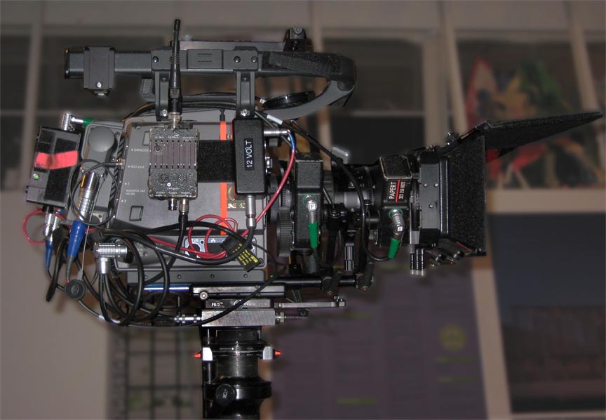 This is a continuation of the product line that started with the F900 and continued through the Genesis all of which was designed prior to RED's existence, so I think it wouldn't qualify as a "response" to the RED. re: Chris and Easyrig, yes, it worked out well on this job. Wasn't quite aware of how much of a difference it made until I put the sucker on my shoulder directly well into the job. It also helped with the front-heavy nature of the camera--I got it to the point where the camera just sat level on my shoulder with no hands. The only problem with the Easyrig is that when the camera wasn't onboard, I kept forgetting I was wearing it and whacked a few people with the thing, especially if I bent forward. Comedy. My excellent AC Emily festooned the top with mistletoe for our last day, I netted a few smooches as a result.