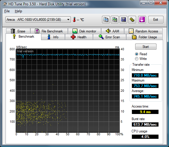 Noteworthy is the performance degradation with increasing fill rates on the single disk, but none of that on the raid30. The same performance degradation happens with a 2 disk raid0. Notice that a 12 disk raid30 is for most of us overkill, but a 4 disk raid3, possibly with a hot spare added, is definitely a serious performance improvement. Not many raid controllers support raid3 however, so the alternative may be to use raid5 or even raid6, although for video editing raid3 is probably the best. Maybe you need some drive cages to fit those disks in your system, but that is IMO better than externally. No cables, no extra power supply, no external housing. Maybe also have a look at these guides, there is valuable information in there that may be of interest to you. http://forums.adobe.com/thread/436215 |