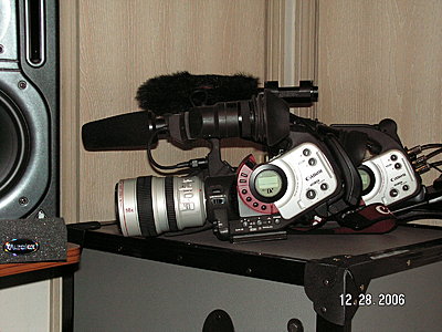 Well, here is what I am currently working with. 17" powerbook witch FCP HD Studio. I'm running everything through it. The First Camera is a XL-1 with an XL-1s lens and viewfinder, while the second is an XL-1s with the MAnual lens, CRT viewfinder, MA-200 shoulder support and an AZden SGM-1x mic. I've got some various other equipment...wireless mics, wired Lavs, teleprompter boom poles, Light kits, Switchers, ste....but this is the main setup.