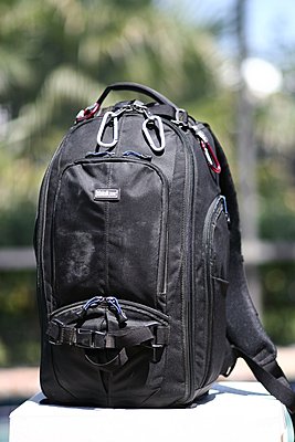 Since power in the boonies was constantly on and off batteries were critical. The Swit 8u62 were both economical, long lasting but still compact for portability so I had plenty of batteries to leave charge during the day while I was out shooting with the previous day's batteries. The Dolgin dual EX charger was a lifesaver. It withstood all the on/offs without a hitch and I could depend on it's smart charging to eek out the fastest charge of both batteries. I've been a longtime user of the Sennheiser SK100 wireless bodypacks and loved them for their rugged metal construction but I picked up a G2 lavalier system and I have to say I'm won over. They are so much smaller and lighter but best of all, they ran for more than 2 days on just two AA batteries. The SK100's were 4 hours at best so I'm converting over to the G2 for all my field gear. Spudz are the greatest invention since microfiber cloths. I used them as much on my glasses as lens filter. Nuff said. Lastly, I needed a small-as-possible pack for my EX1r and related gear so it would qualify as an airline "personal item". The Thinktank Streetwalker Pro fit the bill and fit under both jetliner and twin prop commuter plane seats. I love how it stands up and can be carried by the handle. When you've got a loaded backpack on and something else in your hand, it's great to not have to get all the way down on the floor. It also works as a papoose pack as shown below. The side pockets also hold a 17oz Platypus collapsible bottle and zip closed to keep it sanitary. The zippers on the Thinktank kept working though days and days of dust. |