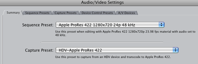 I've tried everything to just import it as one single file. My sequence setting is pro res 422 I dont have ProRes422 as an option for capture setting. Just HDV and some other stuff... It might be my version of Final Cut. 6.0 Steve |