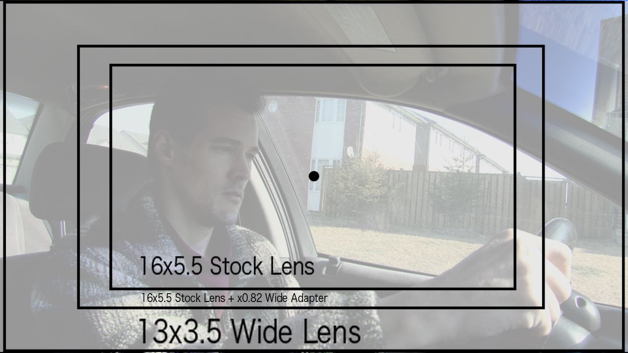 The converter effectively turns your 5.5mm lens into approximately a 4.5mm lens. The adapter can also "live" on the lens and the hood slips right over it. I've attached a field of view comparison of the stock lens with and without the converter, compared to the expensive wide angle 13x3.5 lens. This was based on a real world test, and not calculated, so the adapter doesn't appear as wide as you might think.