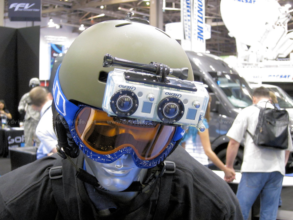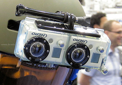 I saw the proposed stereoscopic version at NAB. It consists of two of the of their HD Hero's side-by-side (6cm separation, no flip) in a plastic housing. I asked the guy at the booth about sync, and he said they genlock them, but I am not sure I believe it. They had the 3D mount in two locations, and in one case you could see the back through the transparent housing. There is a slotted space on the back, looks little like SD slot. They plugged a connector into each one, connected with a cable, and continued with that cable to the switch on the front of the housing. It would indicate that they at least start the recording with the same switch, but I have no idea if there is a real genlock involved. No real reason for it not to be so, except for some insight and planning. Genlock is really not that hard to implement, and since they sell their cameras in highly dynamic environments, it would be logical to consider it, assuming they know ahead of time that they may use the individual cameras in 3D configuration one day. I took a video of it, and will post in on YouTube (in 3D) if anyone cares to see it. The 3D version will be on the market "soon". It's possible, since they only have to mass produce the housing and connecting cable (prototypes obviously exist now).They were selling the cameras at the show for $200 ($100 off list).