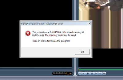 I have had a similar problem, editing Sanyo MPG4 files. I got The Womble program to work fine, until I realized the files were first exported out of the Uleed program which I tried and was not happy with it. When I tried to download the files direct out of the camera or the memory card direct it would not work and kept crashing. How do you download the files into the Womble program? Fred