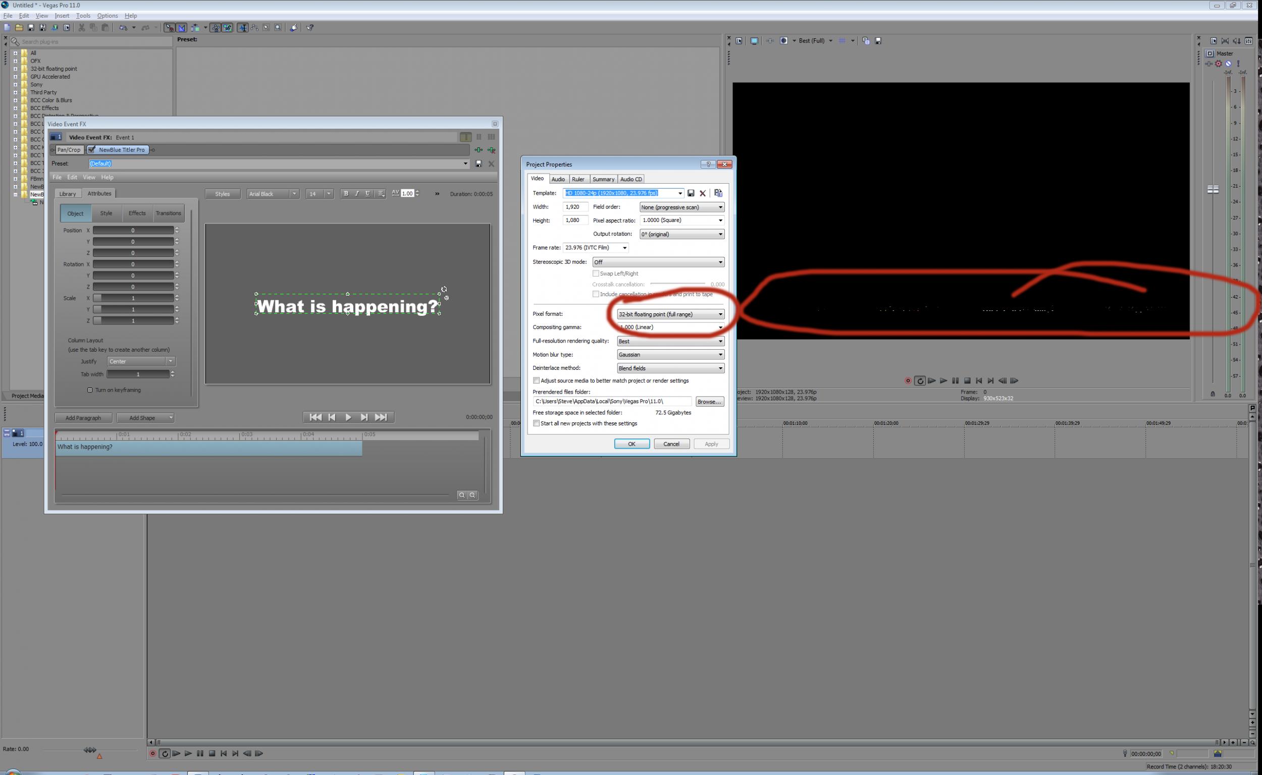 (Full Range) worked fine on my system. I changed it to the middle entry (Video Levels) and the text in the Titler GUI disappeared a couple of times but the Vegas preview still looked fine. For more help, you need to start a help ticket at NewBlueFX | Video plugins and audio effects for Avid Liquid, Avid Media Composer, Adobe Premiere, Adobe After Effects, Apple Final Cut Pro, Apple Motion, Corel VideoStudio, Pinnacle Studio, Sony Vegas, Canopus Edius and other video editors - NewBlueF.