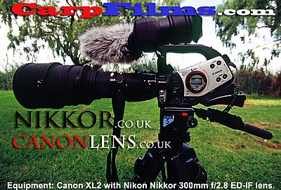 Sony EX3 Nikon mount Sorry the quality is not top notch, I shot and uploaded the clip in less than two hours. This combination would be an ideal setup for a wildlife photographer. Having said that, you can also get an adaptor to use on your Canon XL - I had one that I used on my XL1s. The main advantage for me is that the EX3 uses solid state memory cards (SDHC) and the workflow is much faster than with tape.