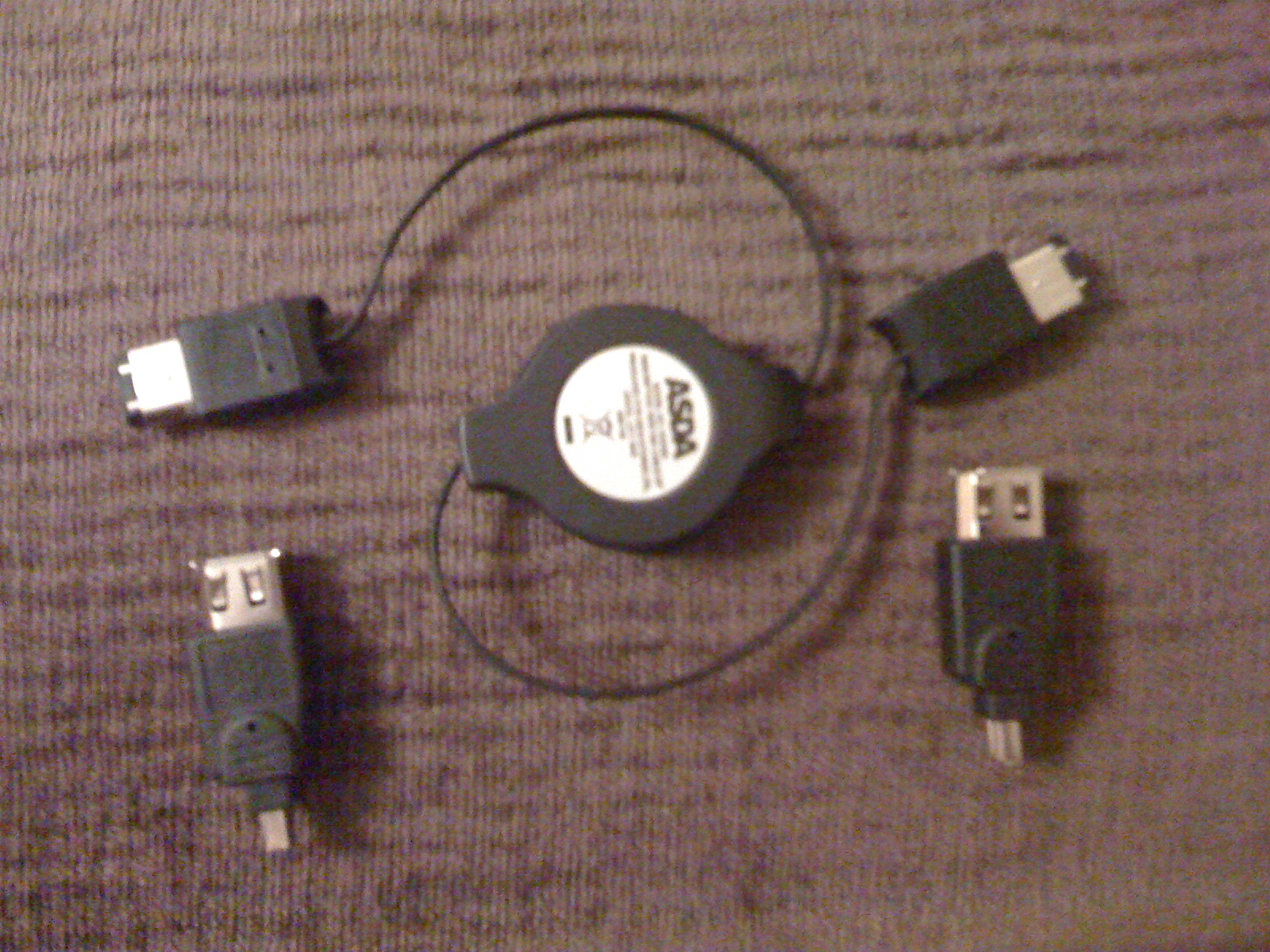 Perhaps not the highest quality for repeated everyday use, but it works OK. Sorry for the low quality iPhone pics - the circular sticker reads: ASDA MODEL NO: WM065 DESCRIPTION: IEEE 1394 CABLE KIT PRODUCED FOR ASDA STORES LTD, LEEDS LS11 5AD 388/105 |