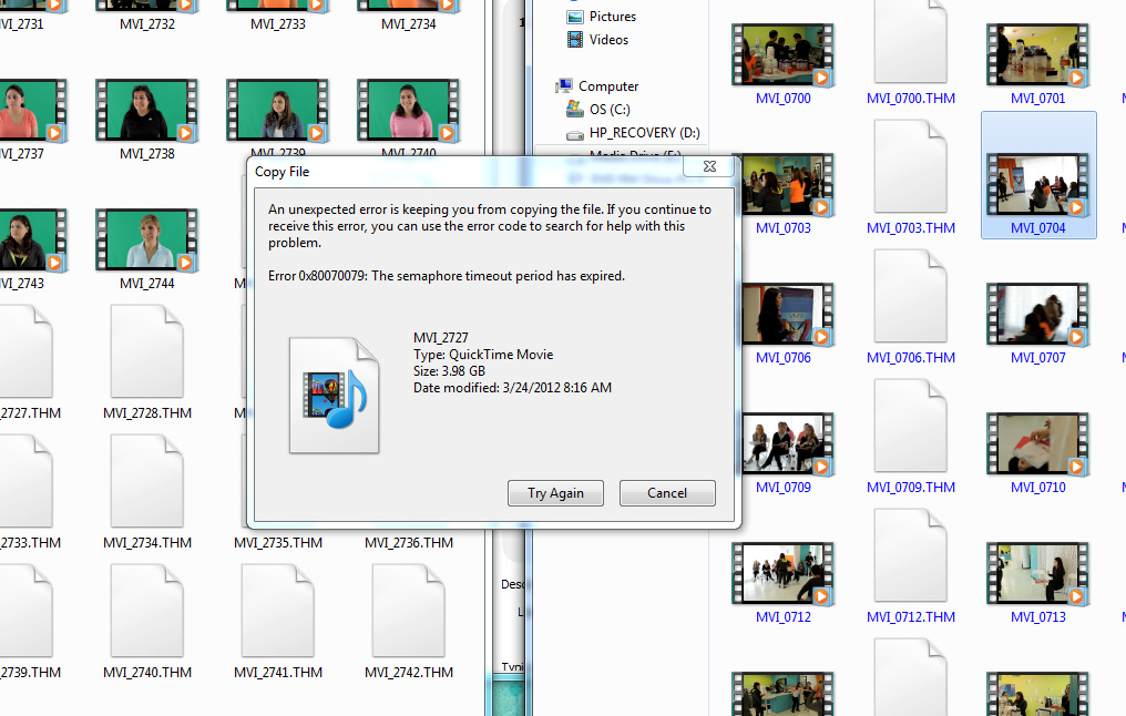 So I did a shoot yesterday using my 5D mkii and T2i. Today while copying the clips over to my hard drive I get an error on one of clips. This is from the SD card coming out of my t2i.The funny thing is that I can play the clip off of the card, so the video is there. It just won't copy over for some reason. Any ideas on how to fix/prevent this?