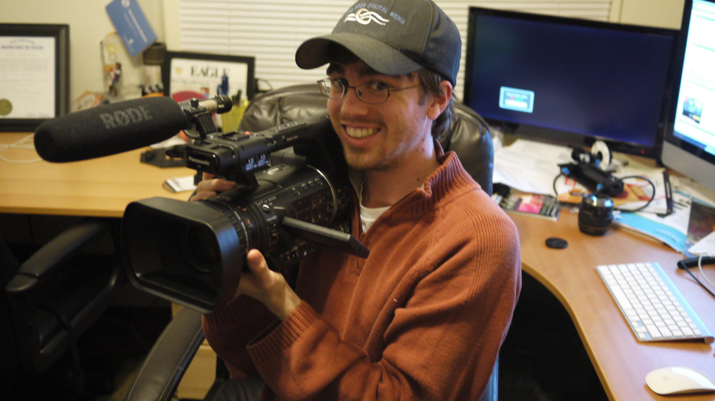 Wanted to share my first commercial shoot w/ the AC130. Really simple little setup at a cabin in the woods for a local environmental outreach group - 15 second spot for movie theaters, so only like 2 lines of monologue. Used the AC130 with natural light and a bounce card and got some nice looking stand-up interview footy. It's REALLY sharp! Screen grabs below original and corrected with some simple curves and saturation in Final Cut X. I used Scene File 1, just default Panasonic, daylight white balance, @ 0db. Very impressed so far. |