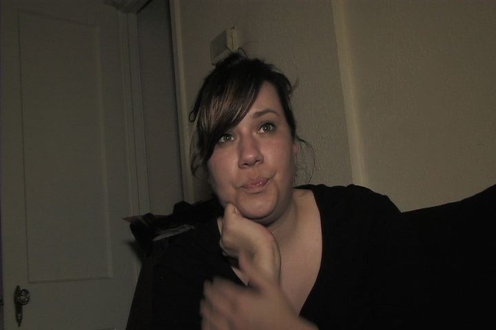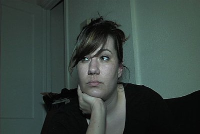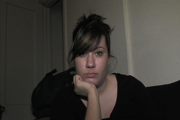 Okay, there were some things I didn't do in the first battery of tests, so with Patient Girlfriend Watching 30 Rock" as my subject, I did some different settings. All of these were shot at 30p, 1/60 shutter, from 3ft away or so. A note: all manual white balances are done WITHOUT any gels on the light, for better or worse.