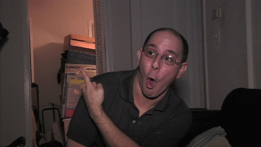 So, again these were all taken with a Canon XL2, using my "low light settings" (low knee, normal gamma, black stretch, everything else should be factory presets) from about nine feet away (since the specs say 85 lux @ 9 feet, I wanted to test that), 30p, shutter 1/60, open to f1.6, no gain, light at full intensity (it has a dimmmer). "Well, Josh that's a nice block of pictures, but I don't know what any of this means. And by the way, you look like a jackass." Now, hold on, people; I'm going to explain what each pic is, and the silly faces are for your amusement. And cause no one ever posts tests with silly faces. So, Top left is tungsten white balance preset, with nothing on the light. Top right is with the diffusion filter only on the light, tungsten white balance preset. 2nd Row (from the top) left is nothing on the light, but daylight white balance preset. 2nd row right is tungsten white balance preset, with the warming filter on the light. 3rd row left is tungsten white balance preset, with both the tungsten filter and the diffusion on the light. 3rd row right is a wideshot so you could see the spread of the light (and my cereal and wheat thins). This is from about 18-20 feet away, daylight preset bottom pic is tungsten white balance preset with the tungsten filter only on the light. I'm not too familiar with how the attachments work on this board, so sorry it's not more organized. So what we see is that the raw color of the light in a tungsten environment is totally unacceptable (though we knew that), but that it's also not quite truly 5600K or else the daylight preset shots would look totally right instead of slightly weird. We also see that the tungsten filter WAY overcorrects, in my opinion, so you'll probably need to experiement and cut your own gels to find the best color correction, or fiddle with manual white balances (one thing I didn't do in these tests). However, the idea should be to match the light's color to the rest of your environment, so that your backgrounds don't look totally different from what the light is actually hitting. Oh by the way, the slivers of light in the room behind me are from a tungsten source, so perhaps manual WB is the answer? I'm clocking out for tonight, so I guess we'll never know (until the other couple guys on this board that ordered one get theirs, that is). Man. . .I shoulda tried the tungsten with the minus green. Oh well. |