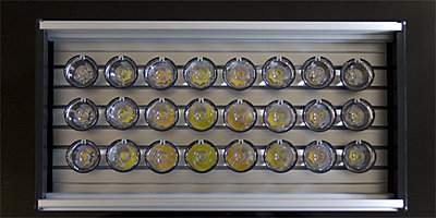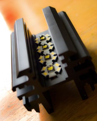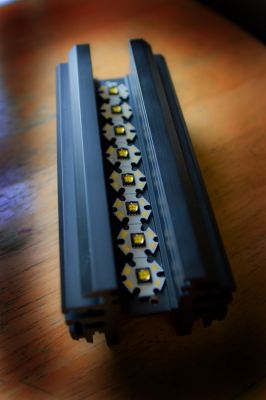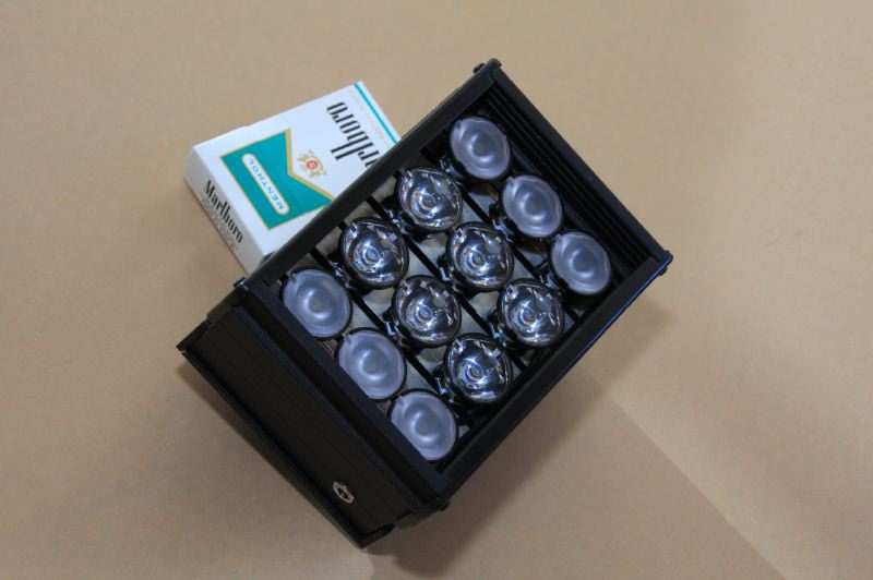 I recently made this beast for a friend who wanted small as possible with the highest brightness and battery operated. It measures only 12 inches across X 6 inches and 3 inches deep.