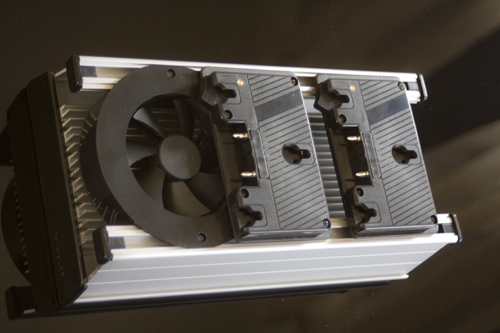 The leds are lighting class 2000 lumens each. 6 leds are 3200K and 6 are 5500K. The switch allows 3 color choices, 3200-4000 and 5500K. Dimmer id non PWM type without banding or flicker issues at high shutter speeds. Small bettery plate is for the Sony BPU series 14.4 volts. The fan is Papst ultra silent, the casing is T6061 aluminum, the unit weighs 2 lbs without battery, all wiring hard soldered teflon, dimmer pot is mil spec Allen Bradley 500K turns. Sorry, not for sale. Just showing what can be possible with high grade leds and components. Last edited by Arthur Gannis; July 4th, 2014 at 08:57 AM. |