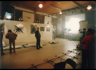 shot it at local community center ... just used a wall of flats ( rented from theater)... added a little smoke, lighting, & sound blankets on floor ... shot on 16mm ..ASA 100 film .. zeiss 10-100 T2 lens ..shot at T2.5 |