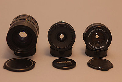 Sigma 28mm f1.8 - $100 *SOLD* This lens looks almost new. The focus ring is backwards like Nikons so you turn it clockwise for infinity. Canon 50mm f1.8 - $40 Cool little lens. Extremely compact. Even though I have a 55mm f1.2, I still used this lens with 35mm adapter because of it size. Lens cap is chipped but still functional. See pictures. Canon 85mm f1.8 - $120 Very good lens, have some minor dings and normal wear but the glass is clean. It has 55mm thread but I added a step up ring to 58mm to match my 28mm f/1.8 and 55mm f/1.2 and filters. The next two are inexpensive lenses I used when I first got started with my 35mm adapter. They're not great but not bad either. The great thing about them is that they both used the Tamron adaptall system which lets you switch from Canon FD mount to Nikon F mount. They're priced so low that you would probably pay this much for the adapter itself. One of them have the Nikon adapter and other has Canon. Let me know which adapter you want. Tamron 28mm f2.5 - $15 *SOLD* Another very compact lens. Decent, vignettes a bit. Tamron 35-80 f2.8-3.8 - $30 *SOLD* This lenses is surprisingly good. The zoom ring is a little loose but function fine. It's a SP lens which is part of Tamron's better line of lenses. This one comes with a case. And lastly, this is a feeler I'm not sure I'm ready to let go yet: Canon 55mm f1.2 - ?? This is one I personally took apart and remove the click stops for the aperture ring. This is awesome when filming outdoors in cloudy days because I can smoothly adjust for changing light conditions. I'm not responsible if anything goes wrong aperture ring (which is partly why I resist selling it) but I did this over a year ago and it's still working fine. I'm currently using it with a Bower FD-EOS converter on my 5D Mark II. The focus ring is a little stiff. It's fine if you're focusing by hand but when using it with my Cavision follow focus and Redrock focus rings, it slips occasionally if not tighten down all the way. I wanna know how much people are willing to pay for it and if the right price comes along I might let it go. Last edited by Min Lee; August 12th, 2009 at 06:40 PM. |