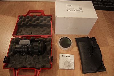 Included: The lens Rear and front caps Canon ND8 Filter Lether bag Instuction manual Original box Custom made lens hard case The sun hood is missing. I lost it on a shoot, but used the lens with a matte box most of the time. You can order it directly from Canon. The lens is in perfect shape. With the constant Large 1.6F aperture, you can acheive very filmic DOF (Look at the pictures). I am asking 450$ USD + shipping. Here is some pictures of the actual lens, and some frame grabs of works (narrative and corporate) I have done with it.