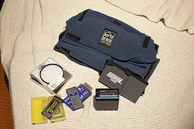 Minus the () - XL1 - 3 BP945 and 1 BP930 - Canon CH-910 Dual Battery Charger and Canon DC920 DC coupler - Case - The case has my business name on the back. See the picture below for reference. - 4 Channel Stereo RadioShack Mixer - Polaroid Portable DVD player used as a monitor. It does come with the video cord, but does not come with the charger cord. But one can be picked up for pretty cheap. - Jag35 ST 35mm adapter along with a Canon FD 50mm 1.8 lens - Comes with adapters to make it fit the 72mm thread on the XL1 - 2xTelephoto Lens, .45 Wide Angle Lens, Achromat Below are some links to images of the package. http://img51.imageshack.us/img51/9247/camerapic.jpg http://img46.imageshack.us/img46/7549/lcdj.jpg http://img502.imageshack.us/img502/9506/jag35st.jpg http://img38.imageshack.us/img38/3962/mixeran.jpg http://img641.imageshack.us/img641/4...sideofcase.jpg http://img176.imageshack.us/img176/1563/frontofcase.jpg http://img695.imageshack.us/img695/7960/lenses.jpg |