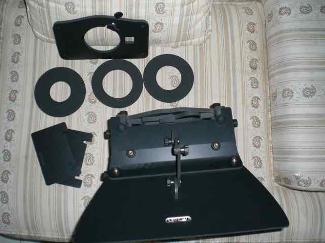 $410 via paypal shipped CONUS. Willing to ship international but will have to negotiate on shipping price. Here's what's included: - Geardear mattebox with two stages, one vertical 4x4", one fully rotating 4x4" with rods support (the Ready-to-use "medium" pack) - Hoods “4shade“ 1 incl medium - French flag - Sidewings 1. Lens mounts 1a. - the Canon A1 mount 1b. - the 105mm general purpose mount 4. Hoodbase...it's the front of the kit, where you attach other accessories like flags, etc. Those screws right below it run from the hoodbase to the lens mount, holding all the stages and everything together 5. Rotating 4x4 filter stage 5a. The filter holder 5b. The filter stage 6. Fixed 4x4 filter stage 6a. The filter holder 6b. The filter stage 7. A "backbone" aluminum piece...not required, but helps stabilize the mattebox better and does make loading and rotating filters a little easier when mounted between the two stages. 8. The donut rings...outer diameter is 120mm to adapt lens mounts to most common lens sizes. 8a. 60mm - (fits 62mm/67mm diameter) 8b. 70mm - (fits 72mm-77mm diameter) 8c. 50mm - (fits 52mm-55mm diameter) |