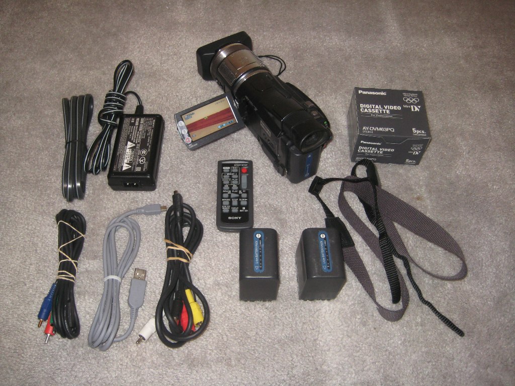 Included is: 1 - Sony HDR-HC1 High Definition HDV video handycam camcorder. 1 - Standard NP-FM50 Battery 1 - RCA Video/Audio Cable 1 - HighDef Component Video Cables 1 - USB Cable 1 - Remote control 1 - Lens hood 1 - Carrying Strap 1 - Power cord 2 - Long Life NP-FM91 Batteries. These batteries last over 400 minutes. 5 - 65minute premium Panasonic video tapes Condition: Used and in great working order. There is some minor skuff marks on the camera body but these are merely cosmetic. I purchased this camera in the Spring of 2007. I used the camera off and on for 2 years (2007 & 2008). This camera will give you great video quality! Contact me: johnhuebbe@hotmail.com or send me a message. Would like to sell fast. PayPal or Personal Check (but will wait for it to clear) Shipping cost is up to buyer. USPS, FedEx, UPS is all fine by me. More photos here: Index of /auction/HC1_1/ |