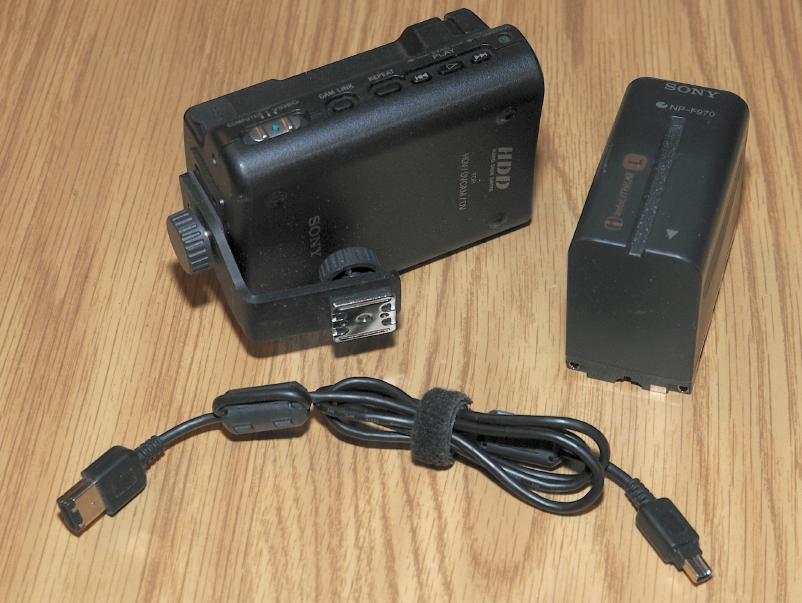 This is in perfect condition, both cosmetically and functionally. I am selling because I bought a camcorder that uses internal memory for recording, so I don't need this any longer. It has been used about 5 times on a Sony Z1 and Canon XH-A1 camcorder with no problems. Complete information on the HVR-DR60 can be found on the Sony Professional Website The Instruction Manual (Adobe PDF) is Located Here The "Guide To Supported Models" (Adobe PDF) is Located Here. This can be used via firewire with several non-Sony model cameras Some features include: 60 GB Storage Capacity (Approx. 4.5 Hour Recording Time) Cache recording: 14 seconds Records video to disk at same time camcorder records to tape for Hybrid Recording™ automatic master creation Can be used for Tapeless Recording with several camcorders Transfers video at ~3x real time (Approx. 80Mbps) HDD Smart Protection Records .m2t (HDV), .avi (Type 1) and Raw DV (DV) file formats Computer mode (SBP2) for fast transfer of files when connected to a PC Up to 13.5 hour run time when used with NP-F970 battery Three recording modes: Synchro, Follow, and Self Includes: Sony HVR-DR60 HDD Recorder Sony NP-970 Long-life Li-Ion Battery Hotshoe Mount 4-Pin to 6-Pin Firewire Cable Instruction Manual $750.00 shipped USPS Priority Mail to CONUS -Ken |