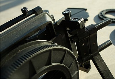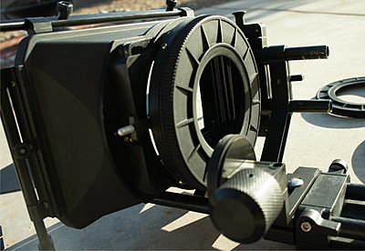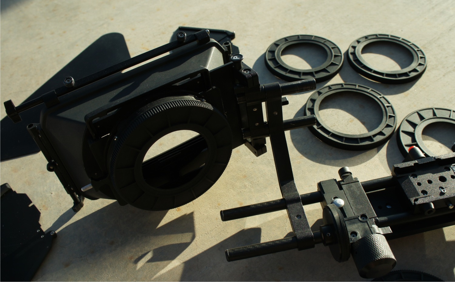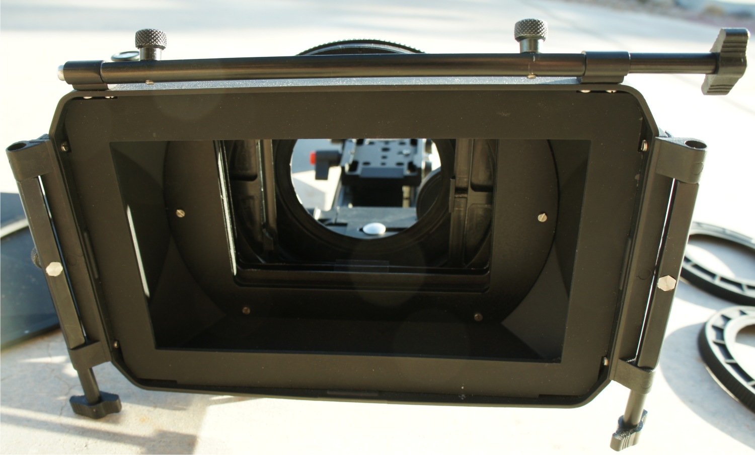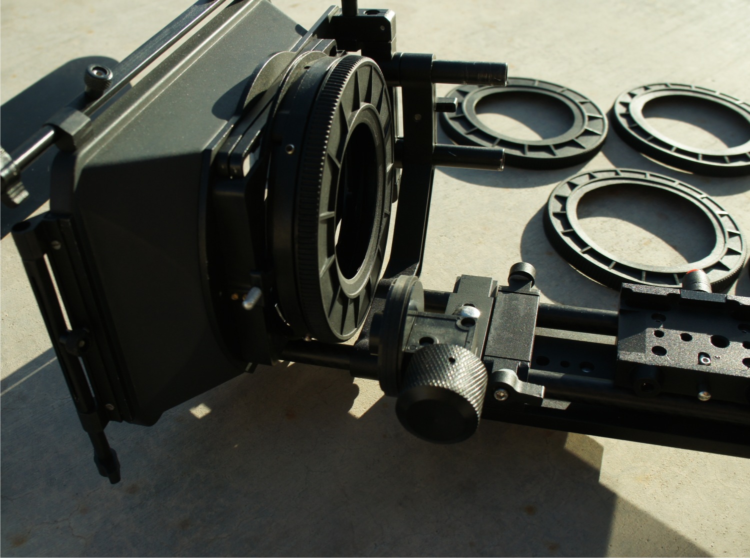 Professional "swing out" matte box with one rotating filter (4x4) and two