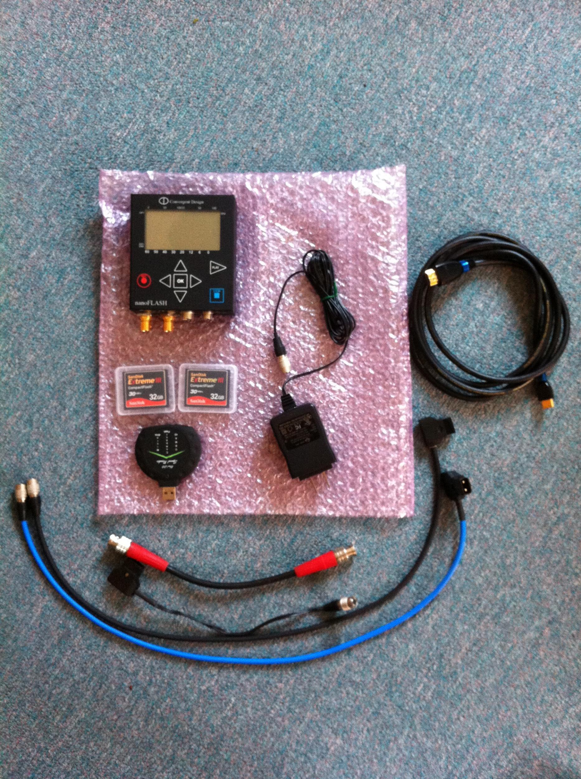 I no longer use my Nano flash so I am selling the trusty unit. Here is an opportunity to save $900+ on a full kit ready to plug into your D-Tap and go. Nano Flash is excellent condition Stock USB CF card reader 2 – SanDisk Extreme II 32GB 30MB/s cards Five cable options: 10” SDI cable custom 9” power cord to D-Tap custom (2) - 24” power cords to D-Tap custom 6’ HDMI mini to HDMI Stock 110v power cord $2099 You pay insured shipping and I pay paypal |