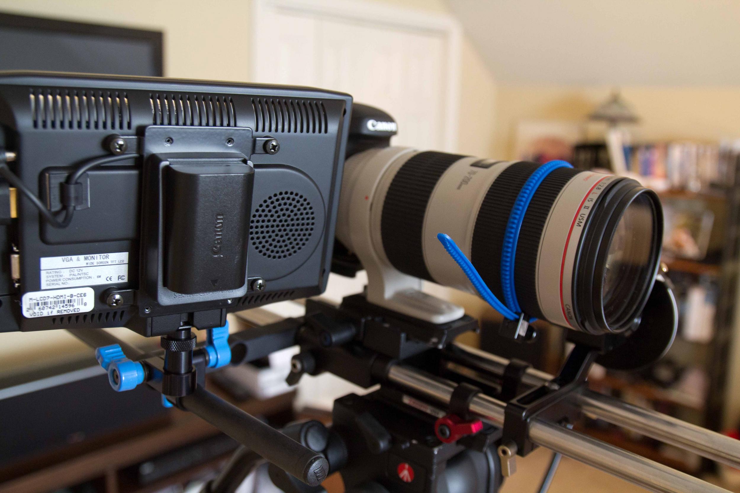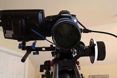 Follow Focus, rail system, external monitor and shoulder mount