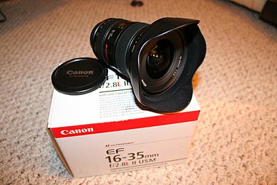 I'm looking to sell a Canon 16-35 2.8 LII USM lens that is in immaculate condition. No scratches, no dirt or dust and no blemishes. The lens takes amazing wide shots on both the full frame and crop sensors and is by far the best wide zoom that I've ever used. I just haven't been using the lens as much as I thought I would and could use the money to purchase other gear.