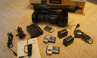 Sony Ex1 with low hours (620) in perfect condition, including: 2 batteries, 2 8G cards, all original cables, charger, owner's manual, and original shipping box. $3500