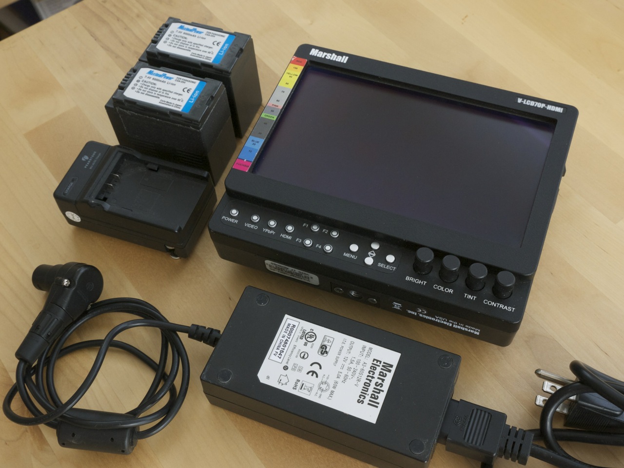 Selling my 7" V-LCD70P-HDMI monitor kit. Includes monitor, power supply, Panasonic style battery mount, 2 aftermarket CGA-D54 type batteries, charger and original box. Features below: