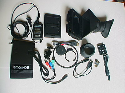 perfect condition only light use includes: -Manual -AC adapter (120V) -Canon 5D/7D Battery Bracket (LP-E6) -Sony Battery Plate (NP-F970) -Lens Cap -2 - DP4 Screen Protector -Cleaning Cloth -Hot Shoe Ball Mount -Mini-HDMI to HDMI Cable, 1.5 ft -HDMI 90-degree adapter, male to female -1.4’ USB-A Female to mini-USB 5-Pin -YPbPr Breakout Cable -original eyecup -New style Eyecup - This works fine but I cut the rubber away a bit so it worked better with my glasses. A new one is $19 . Pics to follow Lenny NSLL@pacbell.net |