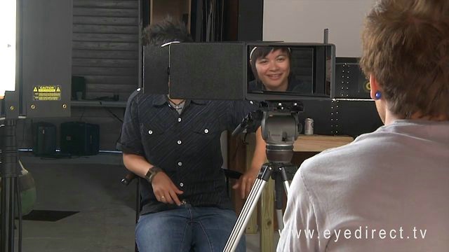"designed to guarantee eye contact from any subject while using a DSLR, C300/100 or prosumer camera. The adjustable base plate, glass mirrors, light-weight and small size, lets you work off a monopod or even handheld."