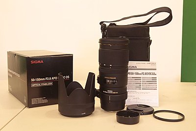 http://www.bhphotovideo.com/c/product/853533-REG/Sigma_692_101_50_150mm_f_2_8_EX_DC.html It gets great reviews, great picture quality and works very well. $740 with regular paypal and shipped, or, $800 with the 1.4x teleconverter below. Comes with all original accessories: Lens tripod ring both caps hood instructions Sigma lens case box Tiffen filter You can't tell this from a new lens, no scratches or dings. This is the latest version of a great lens, very sharp, with good light gathering. It features Sigma's OS (optical stabilization), which is like Canon's IS. Compares well with Canon's 70-200mm f2.8 IS, but much less expensive. Not used much, that's why I'm selling it. I'm also offering a Sigma 1.4x teleconverter for an additional $60 with the lens. The body has a couple small marks, but the glass is perfect and it works fine with the 50-150mm. Includes front and rear caps. Not selling this separately at this time. It's an "APO Tele Converter 1.4x EX". The forum doesn't seem to allow more uploads, please PM for pix of the teleconverter and include an email address.